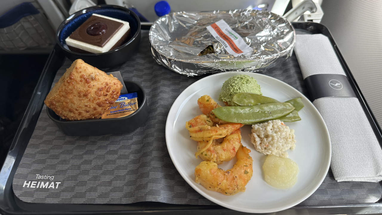 Auf weiteren Flügen im Sommer 2025 gab es z.B. ein Rinderfilet mit Kräuterkruste oder Lachs mit Kartoffelsalat.